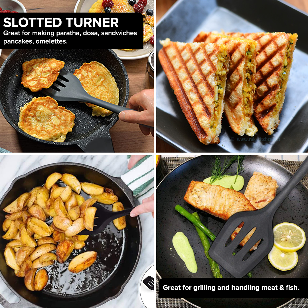 - BIG TURNER is a perfect partner to the other 2 spatulas in this combo as it helps with everything on a tawa or flat pan. Be it roti, parathas, dosa, sandwiches, pancakes, eggs or omelettes.